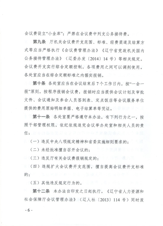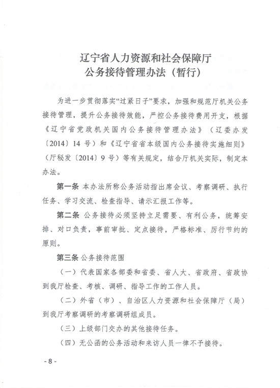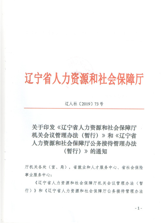 关于印发《辽宁省人力资源和社会保障厅机关会议管理办法(暂行)》和《辽宁省人力资源和社会保障厅公务接待管理办法(暂行)》的通知 辽人社【2019】73号