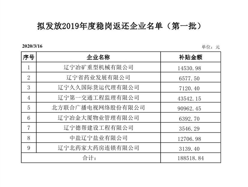 公示:2019年第一批拟拨付稳岗企业名单