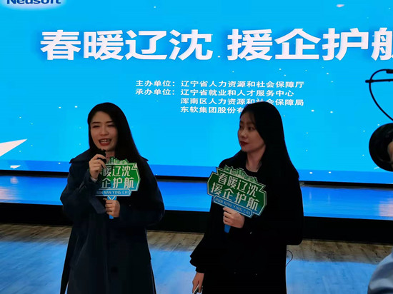 2月28日下午,早春的沈阳室外滴水成冰,但在沈阳东软集团举行的辽宁省“春暖辽沈·援企护航”保用工促就业直播带岗招聘活动,云端相会,键对键,面对面,热闹非凡,点赞和咨询,秒秒滚动,红红火火。